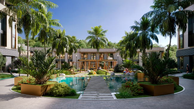 Функциональное наполнение комплекса продумано так, чтобы создать устойчивую и удобную среду для жизни, где все важное – рядом. Внутри комплексной застройки разместится детский сад, рассчитанный с профицитом на 155 мест. Участок под сад был выбран с учетом рельефа: наиболее ровная часть территории обеспечит удобство эксплуатации и безопасность детей.