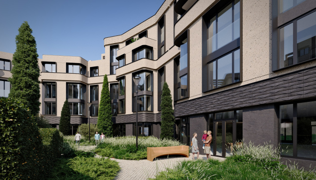 Архитектурное решение комплекса тесно связано с задачей улучшения городской среды. Archivista предусмотрела комплексную инфраструктуру, которая будет работать не только на комфорт будущих жителей, но и на благоустройство всего микрорайона: проект включает организацию новых транспортных связей и оптимизацию пешеходных путей. Корпуса аккуратно вписаны в рельеф, а незастроенные участки выделены под благоустройство и рекреацию: здесь появится общественное пространство, в котором будет приятно проводить время и взрослым, и детям.