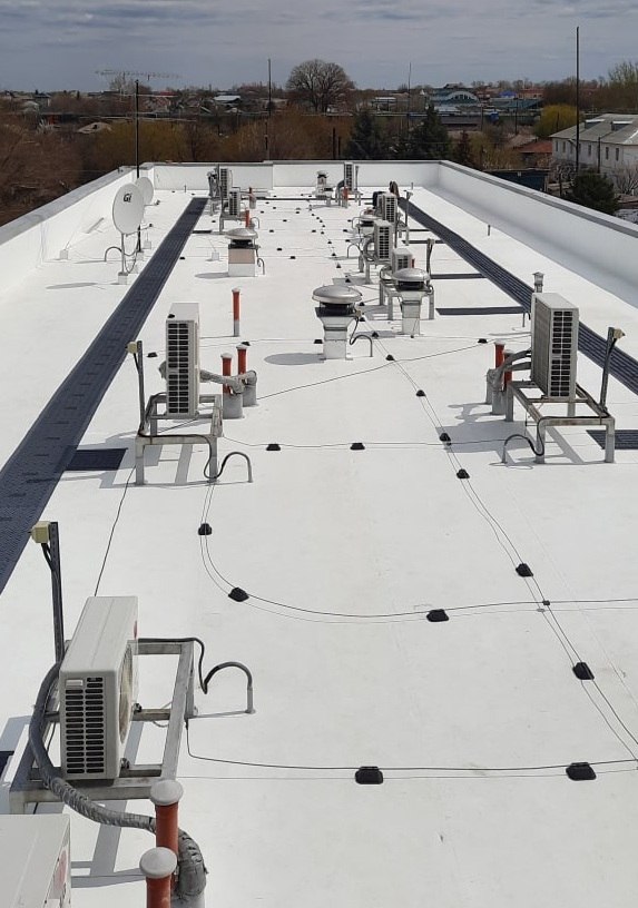 Эластичность – одно из ключевых преимуществ LOGICROOF: мембрана сохраняет гибкость даже при отрицательных температурах. Она устойчива к проколам и нагрузкам. Монтаж не вызывает сложностей: материал укладывается на сплошное основание, крепится телескопическими крепежами, которые закрываются нахлестами полотен, а швы свариваются горячим воздухом специальным оборудованием до полной герметичности.