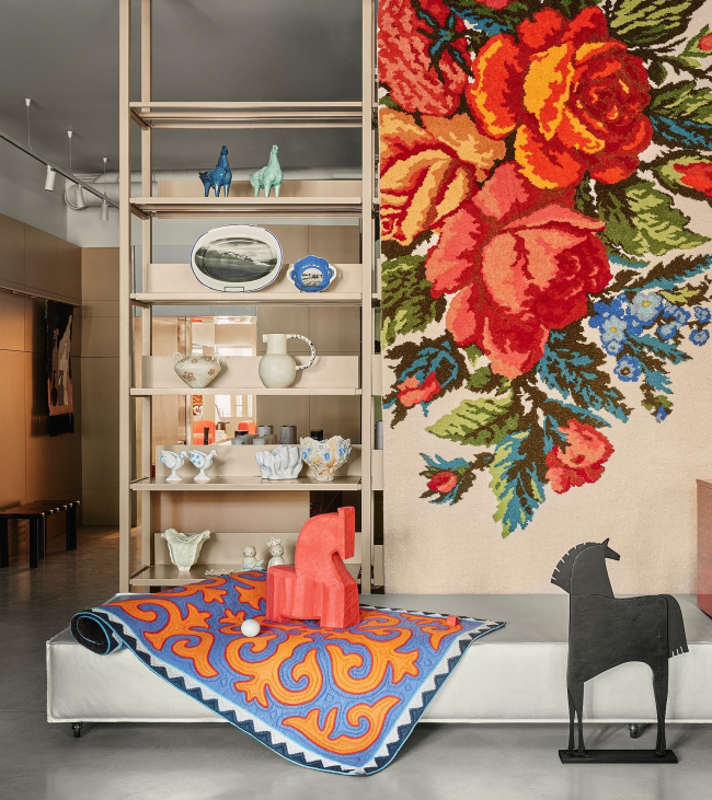 Детали, которые работают на атмосферу Здесь многое построено на нюансах, которые незаметны на первый взгляд, но влияют на восприятие и поведение: аккуратный лайтбокс над входом во второй зал мягко приглашает пройти дальше; ритм полок выверен так, чтобы одинаково удобно воспринимать и маленькие скульптуры, и крупный текстиль. В результате архитекторам удалось создать пространство, которое стало базой для демонстрации уникальных дизайнерских объектов, сохранив при этом собственный характер – с харизмой, основанной на переосмыслении советских интерьеров.