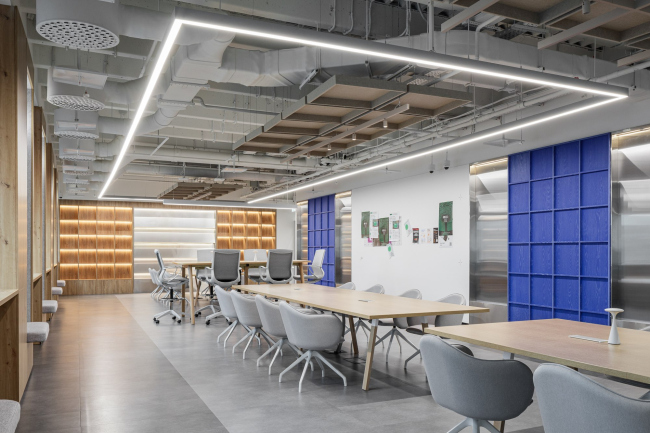 В интерьере требовалось отразить ключевые ценности бренда заказчика:- качество и структурность – выраженные через геометричность пространства, четко организующего все функциональные зоны и создающего ясный визуальный язык;