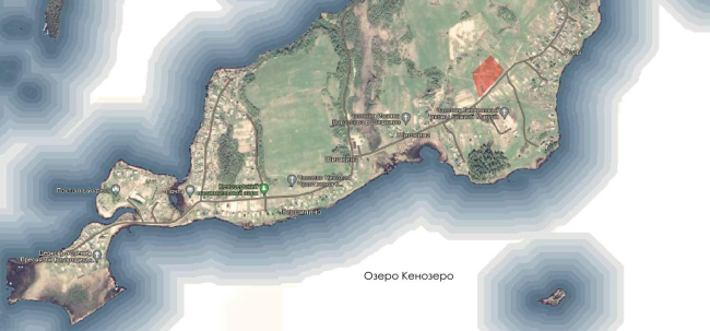 Для строительства депозитария выбран участок в деревне Шишкина. Здесь начинается туристическая и самая обжитая зона Плесецкого сектора парка: с визит-центром, гостевыми домами, трактиром, причалом и разрозненными музеями. Наиболее узнаваемый объект Кенозерья – Никольская часовня на холме – находится чуть дальше. Депозитарий, таким образом, станет первым заметным объектом, который встречает гостей. Здание в числе прочего поспособствует распределению туристических потоков: деревня Шишкина находится дальше от основных маршрутов, но и здесь есть, на что посмотреть. Например, в сторону озера от депозитария раскинулась Тихвинская священная роща, в гуще которой прячется микрочасовня.