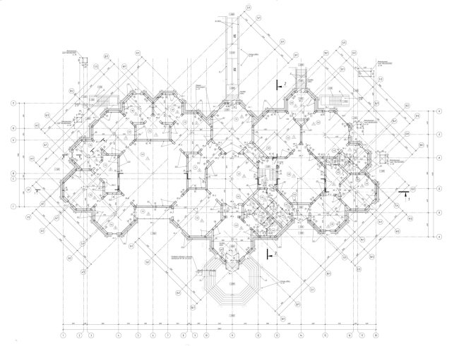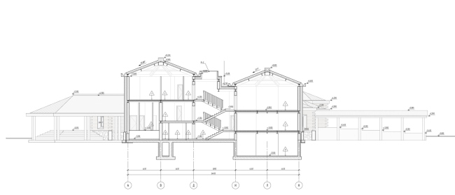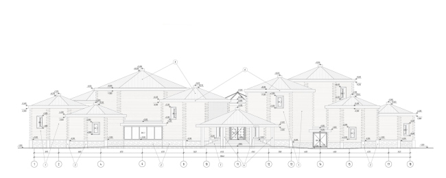 «Небеса» – главная и наиболее ценная часть коллекции, которая относится одновременно к сфере архитектуры и живописи. Вне пространства храма монументальная живопись теряет часть заложенного в ней сакрального смысла и силу воздействия на зрителя. В Каргопольском музее, например, фрагменты небес на полу цокольного этажа Собора Рождества Христова: живопись можно рассмотреть с очень близкого расстояния, но единство композиции утеряно, «деконструкция» запутывает. Проект Кенозерского депозитария нацелен на воспроизведение того ракурса восприятия «небес», который заложили зодчие. Для каждого «неба» авторы проектируют объем, по масштабу и габаритам максимально приближенный к родному пространству храма, поднимая «небеса» на историческую высоту. Одновременно с индивидуальным подходом есть и унификация: единым «модулем» депозитария стал восьмерик, перекрытый пологой восьмигранной кровлей. Он позволил выстроить композицию, основанную на гармонии чисел и геометрии. Даже «красное» крыльцо главного входа имеет в плане тот же восьмиугольник, что и все другие элементы здания. Залы с наиболее полными комплексами «небес» находятся в западном крыле депозитария. Восточное крыло, предназначенное, прежде всего, для реставрационных мастерских и хранения музейных объектов, выстроено по схожему принципу, но здесь уже не все объемы привязаны к конкретным историческим памятникам. Ядром западного крыла стало «небо» , значительно превышающее другие образцы размерами. Вокруг него концентрируются «небеса» в восьмериках поменьше. Западное крыло до определенной степени отзеркаливает восточное. Между ними проходит ось с четкой ориентацией «север-юг», на которой располагается входная группа и уходящая в сторону леса галерея, которая служит эвакуационным выходом, а также центральный зал. В нем зритель через стеклянную кровлю будет видеть настоящее небо. Здесь соединяется опыт от созерцания величия природы и искусства прошлого, подталкивая к переживанию катарсиса. Снег в этой части здания авторы не считают проблемой: со стеклянной кровли его будет сдувать ветер, в безветренную погоду белый снег на фоне синего неба также выглядит завораживающе. Подобный план и использование вариаций единого модуля порождает необычную, выразительную, в чем-то даже бионическую форму, которая хоть и заставляет вспомнить большие каменные храмы, прирастающие приделами и часовнями, но держит от церковной архитектуры достаточную дистанцию, чтобы транслировать свою светскую функцию. Снаружи здание, лишенное шатров и главок, напоминает острог или деревянный кремль. Роль стен, окружающих «град», играет невысокий забор, очерчивающий ровный круг – еще одна сакральная форма. Отсылки к традиционному срубу – рубка в обло, маленькие окна – сочетаются с использованием современных материалов и технологичных конструктивных решений. Так, наружные стены будут выполнены из клееной древесины, вероятнее всего архангельского производства. Все элементы изготовят заранее, чтобы собрать на площадке, минимизируя воздействие строительных работ на заповедник. За деревянной самонесущей оболочкой расположится второй слой – что-то вроде несгораемого металлического шкафа, который сохранит «небеса» от любых напастей.
