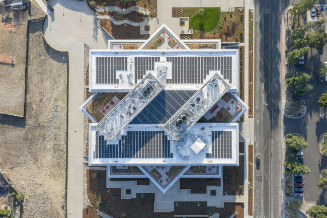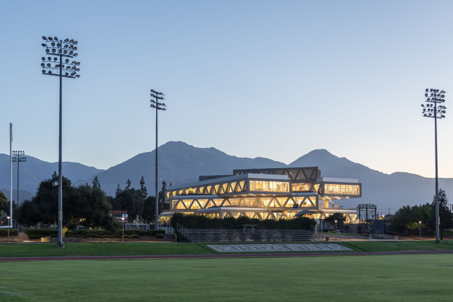 Это первый проект BIG в округе Лос-Анджелес, причем архитекторы надеются закрепиться в Калифорнии в целом. Для частного Клермонтского колледжа имени Маккенны мастерская разработала мастерплан и спроектировала серию построек: основной бульвар кампуса теперь дополнится диагональным, и эта «развилка» обыграна в первом реализованном здании.