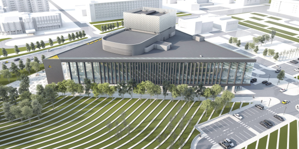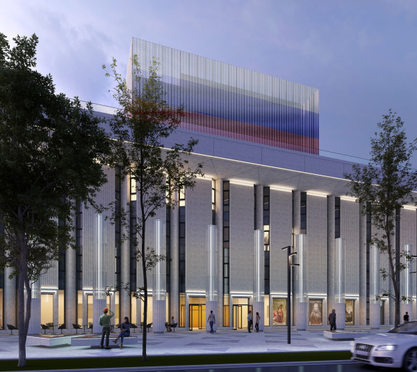 Перед архитекторами поставили задачу создать современный, но с классическими и традиционными мотивами высокотехнологичный театр, который должен органично вписаться в сложившуюся сталинско-советскую застройку центра.