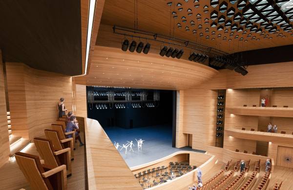 Большую часть времени экран – мерцающий, переливающийся в небе объем, ориентир и городской маяк. Но иногда, при необходимости, на экране могут транслироваться афиши, эпизоды спектаклей, световые инсталляции, а также городские и праздничные мероприятия.Новая роль театраАрхитекторы стремились не только добавить в панораму города новый акцент, но и сделать здание центром повседневной жизни. Они проектировали пространство, где соединятся искусство, образование и общение. Согласно их концепции, театр будет работать практически круглосуточно, предоставляя место для репетиций, мастер-классов, лекций, художественных выставок, образовательных программ и семейных мероприятий. В разное время дня он будет открыт для разных категорий посетителей – от малышей до подростков и взрослых.