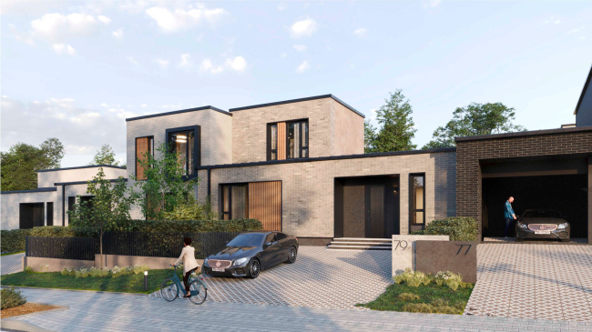Уникальность архитектурного облика ЖК создается за счет объемно-пространственных решений. Секции каждого сблокированного дома скомпонованы индивидуально и таким образом, что исключены повторяющиеся комбинации. В дополнение секции сдвинуты между собой – как в плане, так и по высоте, что делает общий силуэт застройки еще более выразительным.