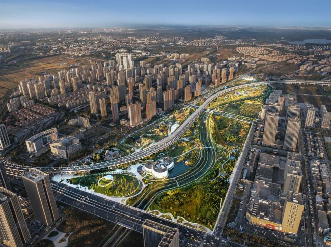 Городские власти поручили бюро SHUISHI совместно со строительной компанией Shanghai Garden Group превратить эту территорию в многофункциональный парк с общественными и коммерческими сооружениями (их общая площадь составила 59 тыс. м2) и важной для Чанчуня экологической функцией. При этом удалось заняться и проектом виадука; его конструкция сделана более легкой, чем обычно: в результате он удачно вписался в парковую среду, а пространства между его опор использованы для спортивных и игровых сооружений, например, баскетбольной площадки.