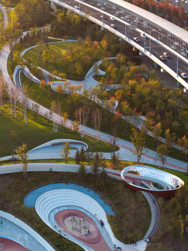 Новый парк площадью почти 50 га в новой части мегаполиса Чанчунь на самом северо-востоке Китая вписан в сложный участок с рекой и виадуком. Авторы проекта – шанхайское бюро SHUISHI.