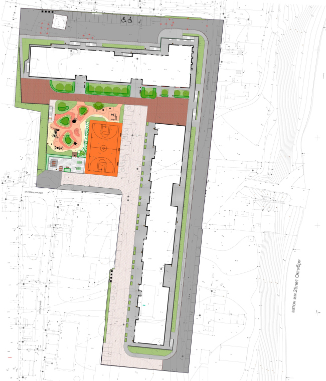 Проектом предусмотрена двухуровневая подземная автостоянка на 410 м/м.