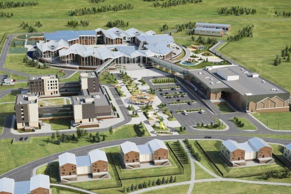 Идея «образовательного города» воплощена в форме круга отдельных зданий со шипцовыми кровлями, объединенных общественным пространством в центре.