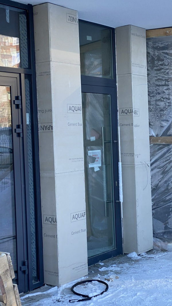 «По бренд-буку застройщика первые этажи жилых домов должны быть бесшовными и вандалостойкими. Исходя из этих требований, компания КНАУФ предложила систему НВФ с АКВАПАНЕЛЬ под дальнейший финишный слой, в частности, для дома 43/2 в качестве облицовки под финишную штукатурку. Также этот материал служил как покрытие под поклейку широкоформатного керамогранита для дома на улице Владимира Заровного, 8», – отмечает Александр Церенов, менеджер по работе с архитекторами КНАУФ.