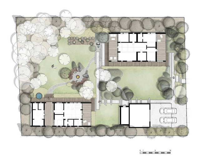 Описание предоставлено архитекторами Сад задумывался как уголок дикой природы – место, которое живет собственной жизнью и требует лишь бережного ухода. Растения-«бунтари» осваивают пространство самостоятельно.