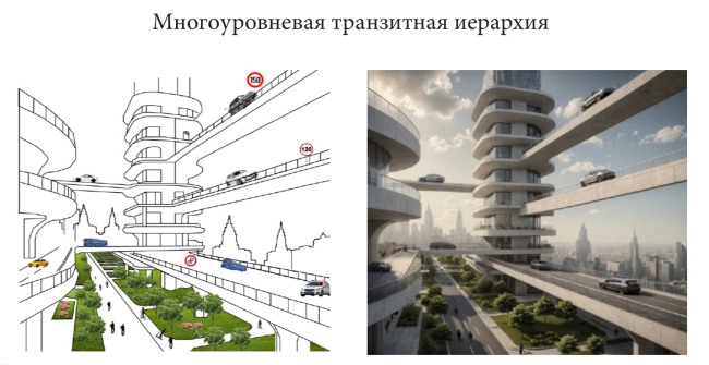 4. Технологические и футуристические концепции Использование технологий для создания динамических, «умных» транзитных систем – от автоматизации потоков до модульных транспортных платформ. Разработка концепций, которые пока невозможны, но задают направление будущим инновациям.