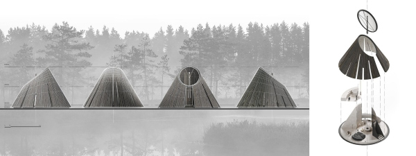 LIMANY – это природная база отдыха с минимальным вмешательством в среду. Образ жилого сектора строится на основе карельской истории и мимикрии всей рекреационной архитектуры под природу, чтобы отразить уникальный контекст места. База отдыха предоставляет стилистически переработанное традиционное жилище финно-угорского народа.