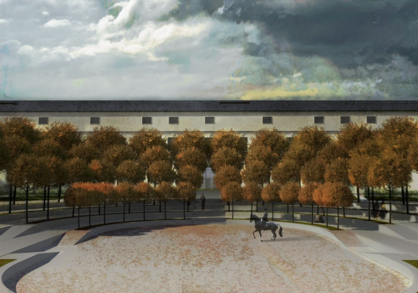 Внутри Конюшенного Двора предполагается устроить «секретный сад». Это пространство, настраивающее на отдых, любование природой, где можно абстрагироваться от шума и смога большого города. В здании Конюшенного Музея предполагается организовать Конный театр и Каретный музей. Театральные кони будут содержаться за пределами города и приезжать на время репетиций и представлений. Для них будут оборудованы временные стоянки для отдыха и питания. На площади предполагается высадить поле овса и установить скульптуру современного художника Ника Фиддиана Грина «Still Water». Под площадью реализовывается подземный паркинг.
