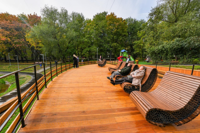 Компания «Хоббика», производитель мебели для города, приняла участие в городском благоустройстве парковой территории вокруг Изютинского пруда (Москва, ЮАО).