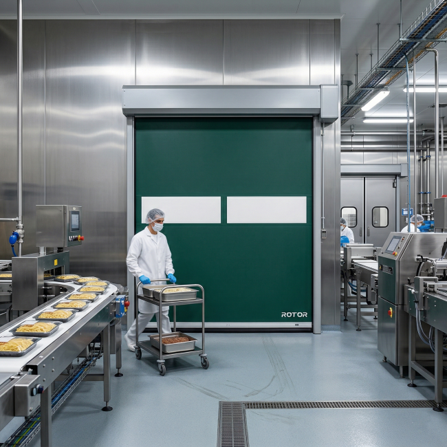 Для пищевых производств особенно важна адаптация оборудования к условиям эксплуатации. В таких средах требования к проемным системам выходят за рамки базовых характеристик: помимо скорости работы необходимы герметичность, надежность и устойчивость к интенсивной эксплуатации.
