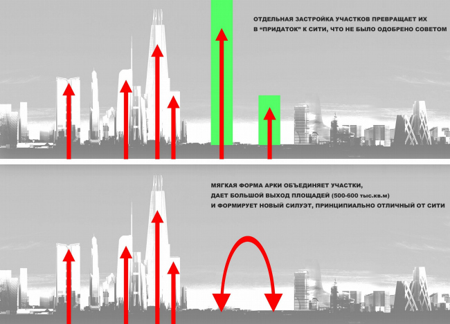 Концепция застройки 24 И 25 участка ММДЦ «Москва-Сити». 2 вариант («арка»)© Проект КС