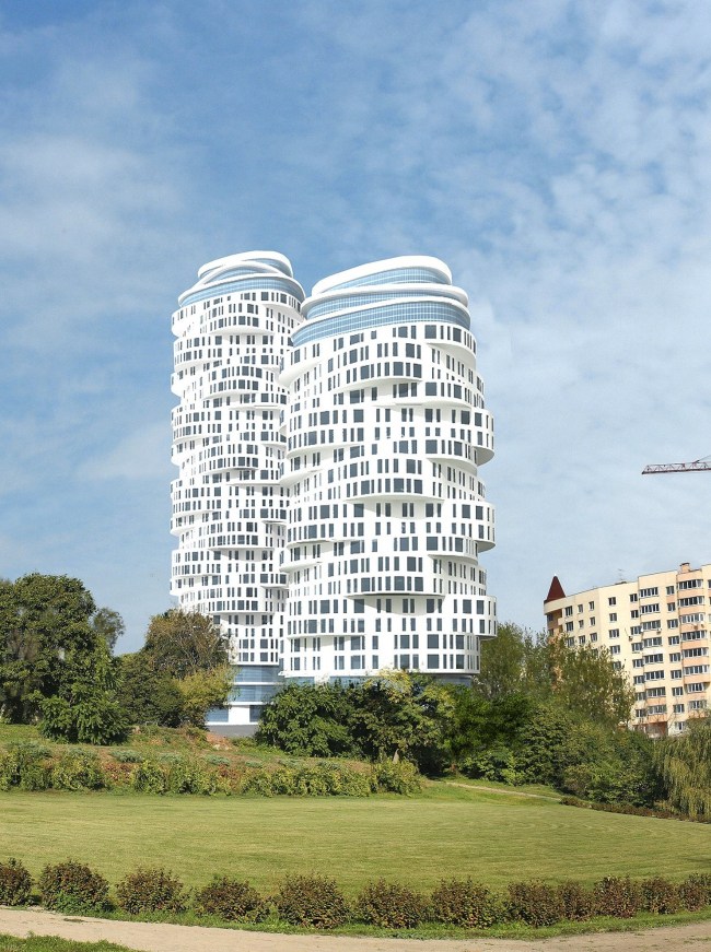 Архитекторы ПАМ Виссарионова спроектировали для Волгограда жилой комплекс в форме двух овальных башен, объемы которых выглядят составленными из платформ, нанизанных на общий стержень и развернутых под разными углами.