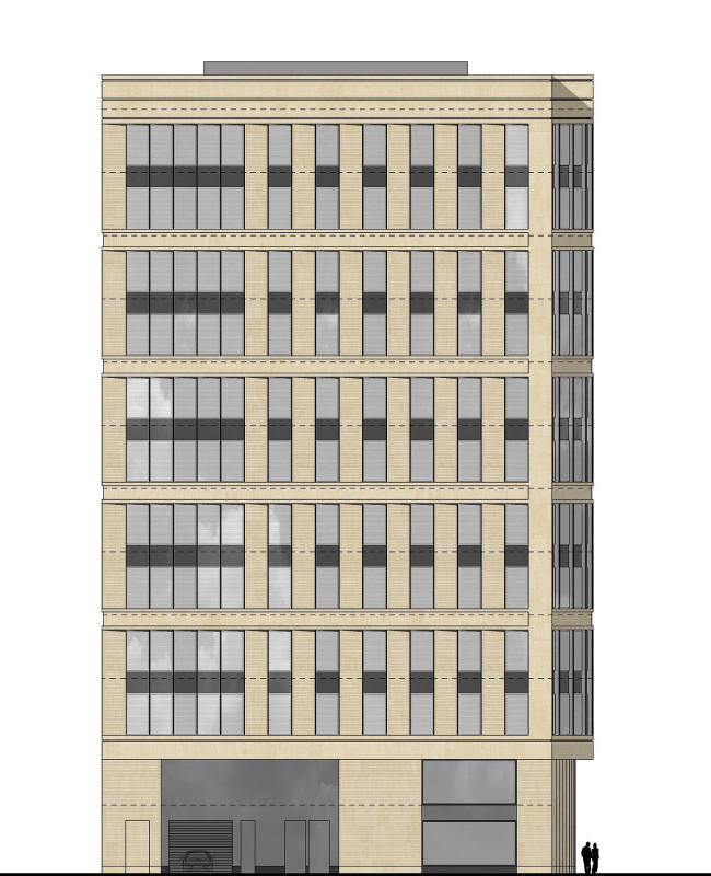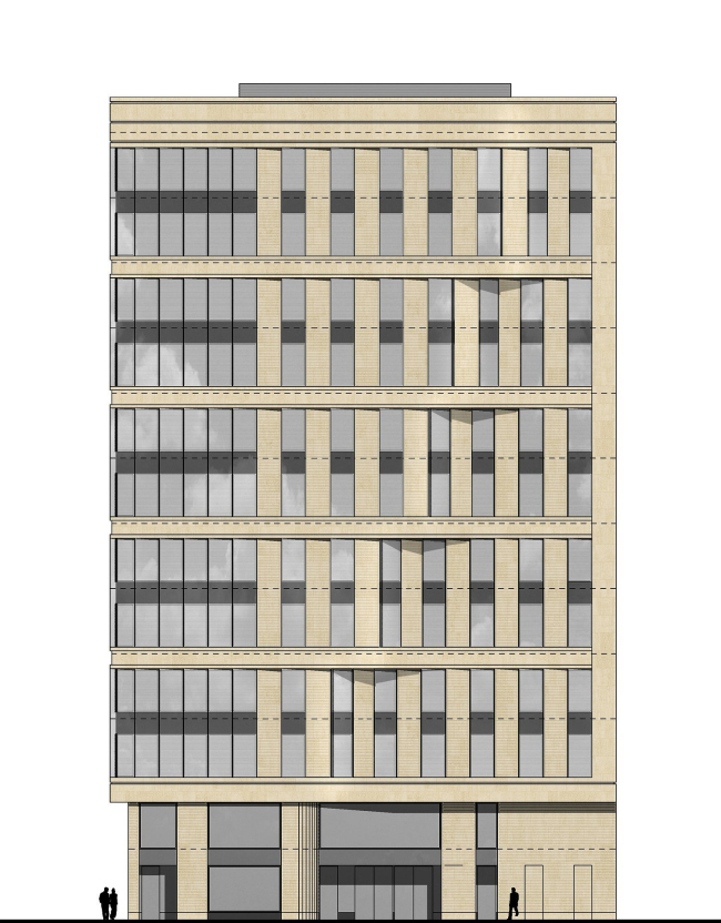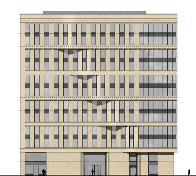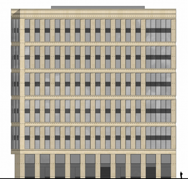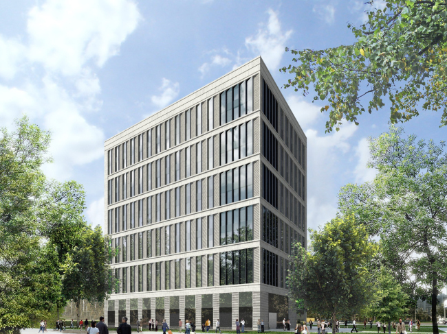 Офисное здание на Ленинском проспекте. Вид на здание с Ленинского проспекта: встройка© SPEECH