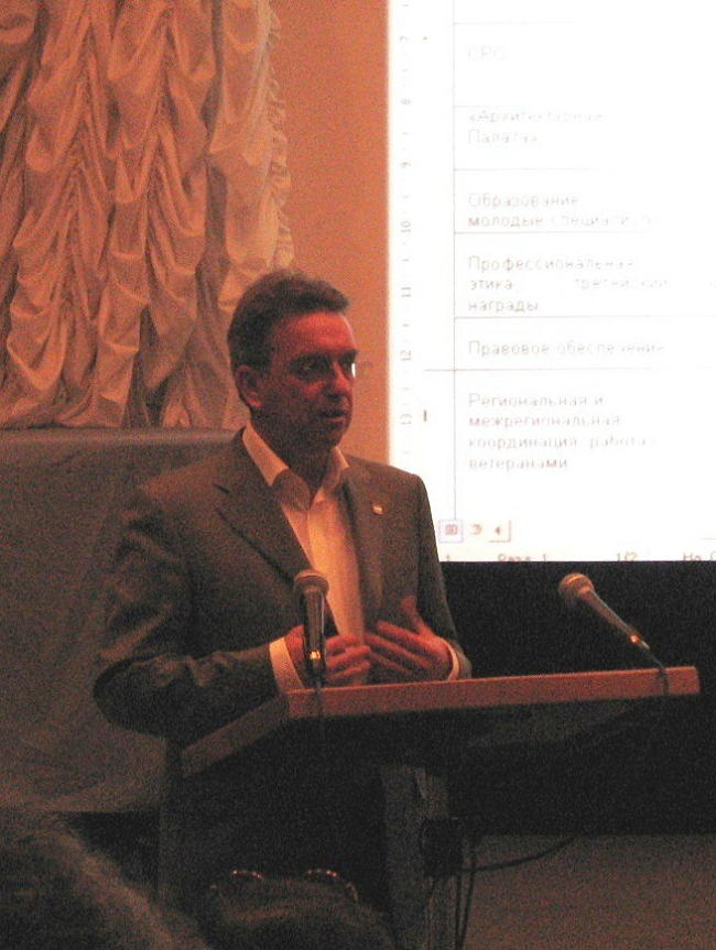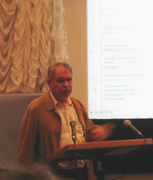 Надо сказать, что состав вице-президентов уже был избран ранее, нынешний же пленум расставил их по местам, т.е. утвердил за каждым свое направление. Таких направлений в блоке профессиональной практики оказалось семь. Законотворческую деятельность и все, что касается документов и регламента, возглавит Виктор Логвинов. Профессиональные советы (по градостроительству, архитектуре жилых и промышленных зданий, ландшафтной архитектуре и архитектурному наследию) – прежний президент САР Юрий Гнедовский. В их компетенцию, в частности, входит внедрение новых технологий в строительство, к примеру, развитие деревянного домостроения. Службой, связанной с советами, станет Гильдия экспертов взамен существующей вне союза экспертизы, уже неоднократно скомпрометировавшей себя коррупционными скандалами.
