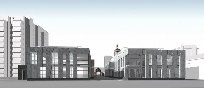 Помимо требований непростого понятия «регенерации» на архитектуру будущего комплекса повлиял и его заказчик – известная девелоперская компания Forum Properties, которая планирует разместить здесь свою штаб-квартиру. Клиент хотел, чтобы его будущий офис был не просто практично-качественной коробкой, но и стал бы выразительным архитектурным объектом, визитной карточкой компании (за примерами далеко ходить не надо – так стал знаковым дом-«пингвин» в офисом Капитал-Групп). Что для девелоперской компании, надо признать, вполне логично.