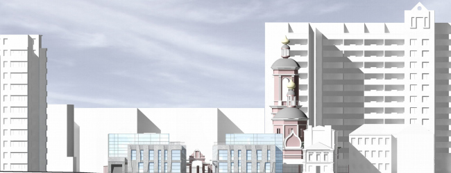 Понятие «регенерация исторической застройки» в современной Москве с ее хаотичным разновременным контекстом с каждым годом звучит все более странно. Тем не менее, именно она нередко предписывается соответствующими инстанциями при проектировании новых зданий поблизости от объектов культурного наследия или просто в исторической среде. Так случилось и с офисным проектом компании «Сергей Киселев и Партнеры» для Пименовского тупика, рядом с которым оказался храм Преподобного Пимена Великого в Новых воротниках (1697-1702).