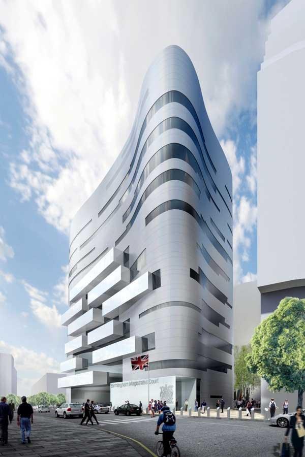 Это уже вторая постройка этой австралийской мастерской для британской системы правосудия: их комплекс для гражданского суда Манчестера завоевал в ушедшем году премию RIBA и вошел в число финалистов Премии Стерлинга. Здание бирмингемского мирового суда будет включать в себя 24 зала заседаний. Как и для манчестерской постройки, его облик будут определять блоки-консоли, выступающие из поверхности фасада. В них будут расположены комнаты отдыха магистратов (мировых судей) и переговорные. Кроме того, серебристую поверхность стен, облицованных металлическими панелями, будут прорезать полосы застекления, благодаря которым солнечный свет будет проникать в доступные публике пространства, в том числе - залы суда. Благодаря такому решению, обтекаемый скульптурный объем здания будет активнее взаимодействовать с окружением, будет более «гражданственным», чем окружающие его офисные и жилые комплексы центра города. Четыре его верхних яруса займут кабинеты руководства и судей, объединенные вокруг атриума. Строительство комплекса должно начаться до конца 2009.Суд магистратов Бирмингема