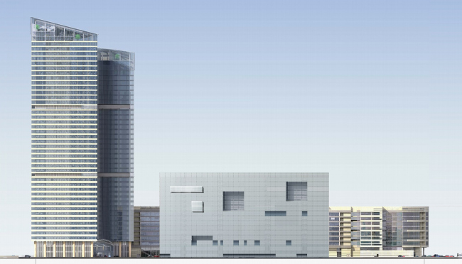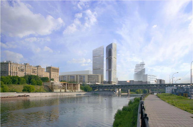 Этот проект предназначался для того, чтобы заменить собой построенное в 1970-е гг. здание «Президент-сервиса» на участке, в трех сторон окруженном комплексом «Миракс-Плаза». Президентская служба уже переехала в новый корпус, а на этом месте предполагалось соорудить еще одну офисную часть «плазы» – по заказу того же «Миракса». Проект выбирали долго – полтора года точно, среди ранних предложений были даже две башни, аналогичные небоскребам «плазы». В таком случае на углу Кутузовки и Третьего кольца, наверное, вырос бы стеклянный лес, мини-Сити. Но этого не произошло, два итоговых проекта делали Александр Асадов и Николай Лызлов, и окончательным (на момент, когда кризис остановил планы «Миракса») стал проект Николая Лызлова.