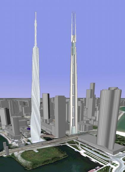 Объявление в Чикаго о закрытии проекта телебашни рекордной высоты в 609 м по проекту Сезара Пелли совпало с успешным согласованием планов строительства небоскреба «Фордем Спайр» такой же высоты по проекту Сантьяго Калатравы.