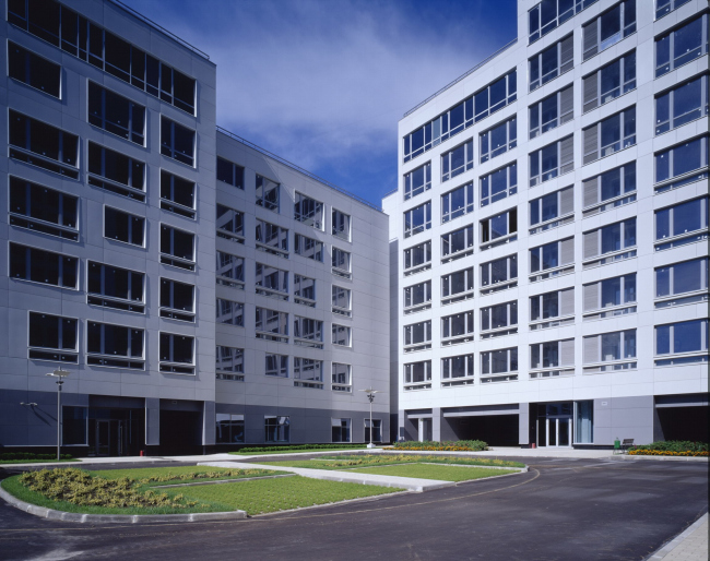 Многофункциональный комплекс состоит из трех частей: жилого дома, занявшего два из трех гектаров территории (для центра это очень много); офисов, вытянувшихся «в струнку» вдоль парка и улицы Усачева, и музея ретро-автомобилей. С функциями современные архитекторы поступают, как правило, двумя противоположными способами. Либо смешивают их внутри здания «внарезку» (особенно это характерно для башен), так, что, к примеру, на 5-м этаже офисы, на 15-м жилье, а на 20-м гостиница. Либо – разделяют функции по отдельным корпусам. Бывают и гибридные варианты («нарезная» башня плюс корпуса и т.п.). В данном случае – вначале был вариант номер два, разделенный на объемы, а затем офисная часть поглотила музей так, что его стало снаружи не видно – и получилось скорее гибридное распределение. Почему об этом надо говорить – потому, что мне кажется, это изменение решительным образом сказалось на архитектурном образе комплекса.