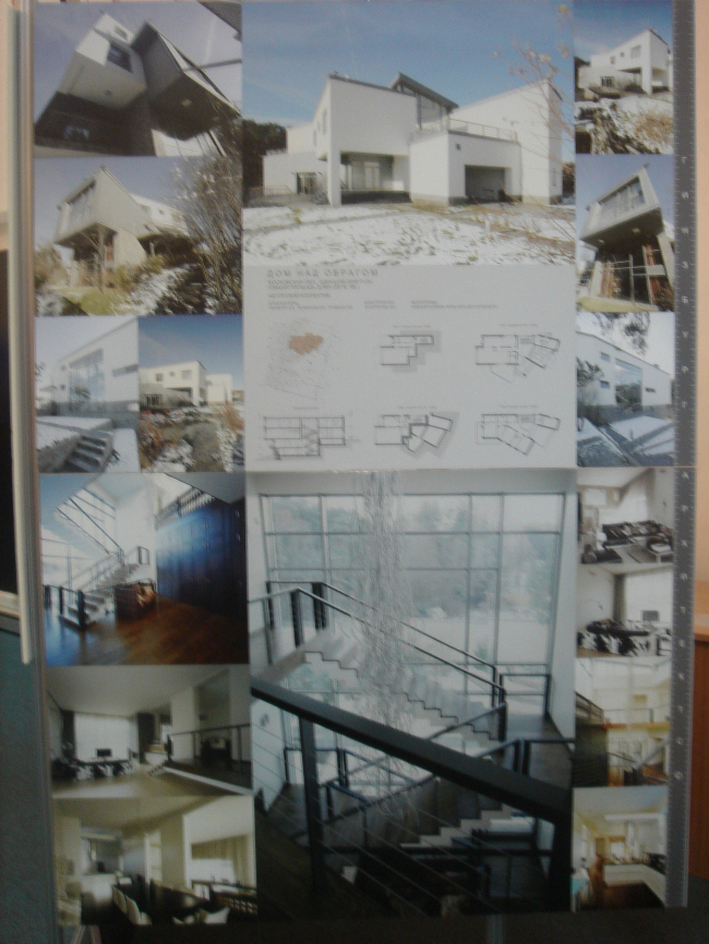 Еще один – уже реализованный – проект Дом над оврагом, похож на архитектурное воплощение кубизма и в разных ракурсах вызывает ассоциации либо с экспериментами авангарда 20-х годов (в частности, с домом Шрёдер), либо со зданием Министерства дорог в Тбилиси, либо с домами периода расцвета архитектурного минимализма.