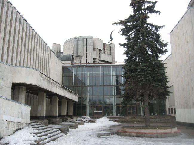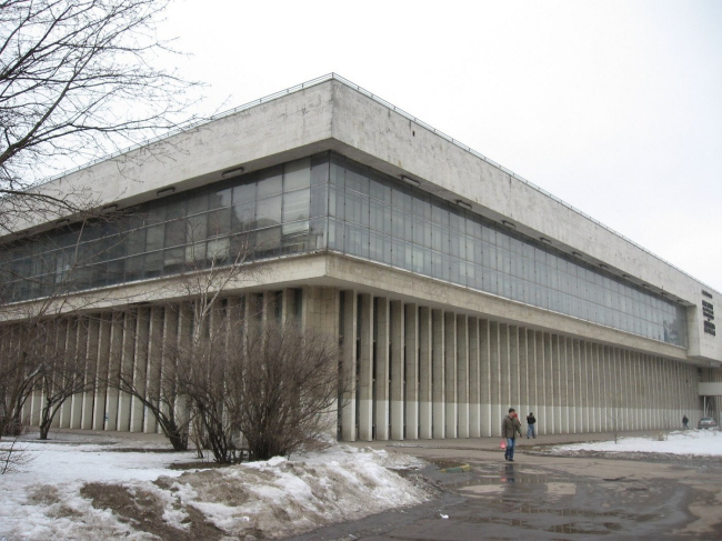 Но к реализации приняли все-таки более современный проект молодых архитекторов – Ф. Новикова, И. Покровского, В. Егерева, которые, кстати, участвовали в экспериментальной застройке Зеленограда. В их проекте дворец сместился вглубь территории, где был развернут потрясающий ландшафтный ансамбль, собравший лучшее, что было придумано к тому времени в планировке подобных учреждений. Он включает множество корпусов и площадок, но главных два: один в виде «расчески» – к длинному телу приставлены перпендикулярно пять корпусов, другой – отдельно стоящий концертный зал.