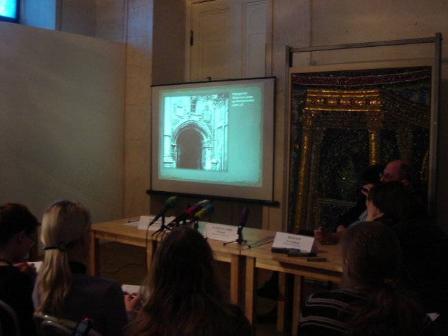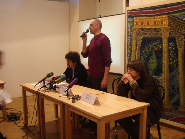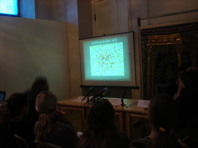 Пресс-конференция проходила в предпоследнем зале анфилады, которого едва хватило, чтобы вместить всех присутствующих. О «Красной книге» рассказывали координаторы «Архнадзора» Александр Можаев, Константин Михайлов и Рустам Рахматуллин. Не вдаваясь в детали функционирования собственно проекта, они сосредоточились на главном – на его содержании, на архитектурных памятниках, которым угрожает опасность исчезновения или искажения.