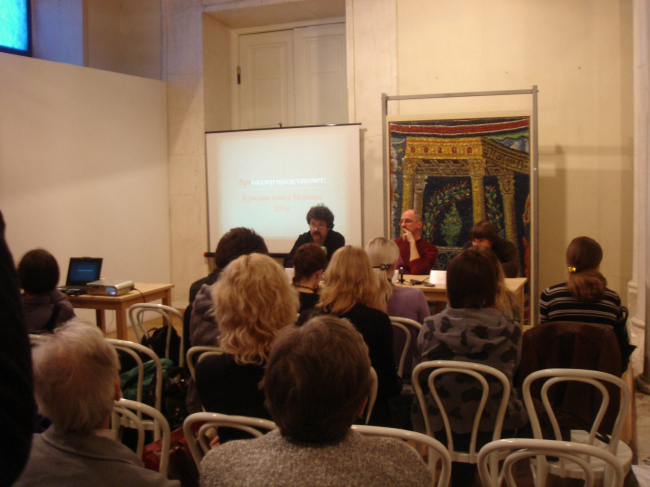 «Красная книга» – на самом деле не вполне книга. Во всяком случае она не издана. Это список зданий Москвы, судьба которых вызывает на сегодня опасение. В него вошло около 250 домов и ансамблей, преимущественно расположенных в пределах Садового кольца. Он существует в электронном виде, но может быть, будет впоследствии издан как книга. Пока же доступны два формата – CD-room, которые вручили на пресс-конференции журналистам, и, что особенно интересно –