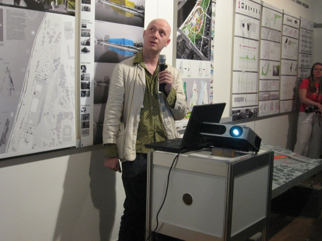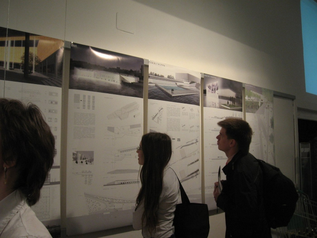 Евгений Асс подготовился к «Арх Москве» основательнее других, организовав на своем стенде заряженную гражданской полемикой презентацию студенческих проектов развития ЦДХ. Этой заряженности Евгений Асс и не скрывал, поскольку сам проект «Территория искусств» родился как ответ на аморальное, по убеждению педагога, предложение руководства МАрхИ: студентам 5 курса сделать концепцию строительства новой Третьяковки на месте существующей. Таким образом исходной темой для проектирования стал пафос сохранения здания ЦДХ, которое, по словам Евгения Асса, имеет огромный потенциал и право быть сохраненным на своем как объект истории и культуры. Помимо этого перед студентами стояла задача сохранить культурную функцию места и открытое городское пространство парка. Студенты разделились на три группы, каждая из которых сделала свою концепцию, а потом в рамках каждой группы четыре ее участника занимались детализацией отдельных фрагментов – кому-то досталось здание, а кому-то – ландшафт набережной или парка. Частью задания стала постановка проблемы и здесь, судя по всему, Евгений Асс сумел направить мысль каждой группы на решение определенного комплекса задач. В результате в каждом проекте какая одна сторона была проработана тщательнее остальных. В концепции «Полигон» в этой роли оказалось подземное пространство, в «Платформе» – связь с рекой, в проекте «Нотрдом» – прекрасно продумано само здание. Однако, как заметил приглашенный Ассом в жюри директор Музея финской архитектуры Севери Бломштед, ни один из проектов не разрешил полностью градостроительных проблем места – оно требует более сильного решения. Поэтому неудивительно, что у членов жюри (Оскар Мамлеев, Юрий Григорян, Наринэ Тютчева, Александр Константинов) неоднократно возникало желание объединить все три работы, дополнив их друг другом. В небольшом пространстве зала красиво исполненные проекты смотрелись весьма эффектно, причем каждый имел еще и подробный макет. В проекте «01/09 Полигон» территория вокруг ЦДХ рассматривается как место для испытания новых объектов в искусстве, пространство для эксперимента. Проект состоит из четырех частей – собственно здание ЦДХ, новое здание Музея кино вдоль набережной, рельеф парка и ЦХ (Центр художников). Здание ЦДХ – само является одним из экспонатов «полигона». Оно полностью переходит во владение Третьяковки, в то время как современное искусство получает новое пространство под землей – Экспод (Экспозиционный повал). Онимеет двухуровневый вход, разделяющий потоки по пандусам в две основные зоны. ЦДХ реконструируется, появляются два новых атриума, кинозал и медиатека. Новое здание Центра художников вдоль Морозовского переулка, предназначено для выставок и общения молодых художников. Здание Музея кино представляет собой новое образование на набережной в форме метеорита, поверхность которого изрезана «кратерами», а грани «реагируют» на набережную, торец ЦДХ и пр. С появлением этого объекта, как считают авторы, композиция Крымского вала приобретает целостность: ЦДХ – линия, Музей кино – точка. В версии «02/09 Платформа» упор сделан на развитие набережной и включение пространства Москвы-реки в большую рекреационную зону. Пешеходная Крымская набережная, к слову сказать, до сих пор не раскрывшая своего потенциала, как, впрочем, 