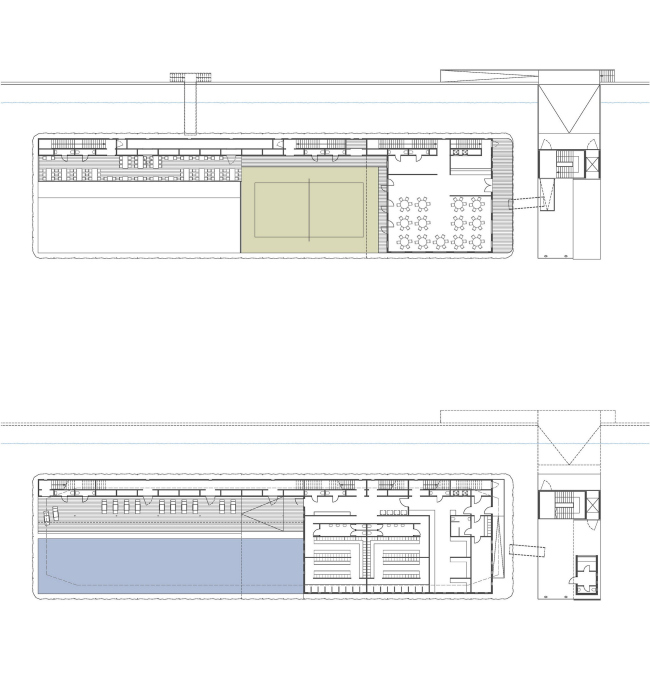 Итак, предложив систему сделав свою «баржу» серийной, архитекторы СКиП ответили на проблемно-градостроительную задачу конкурса. Однако в его условия входило создание не одного, а трех проектов каждой командой. В ответ авторы USB предложили – три конкретных примера – три вероятные функции объекта, все три спортивные: каток, бассейн и скейтпарк. Функции соответствуют разным сезонам и разной аудитории: каток для зимы, бассейн для лета, скейтпарк для молодежи. Что позволяет продемонстрировать, каким именно образом универсальное решение трансформируется для разных задач.