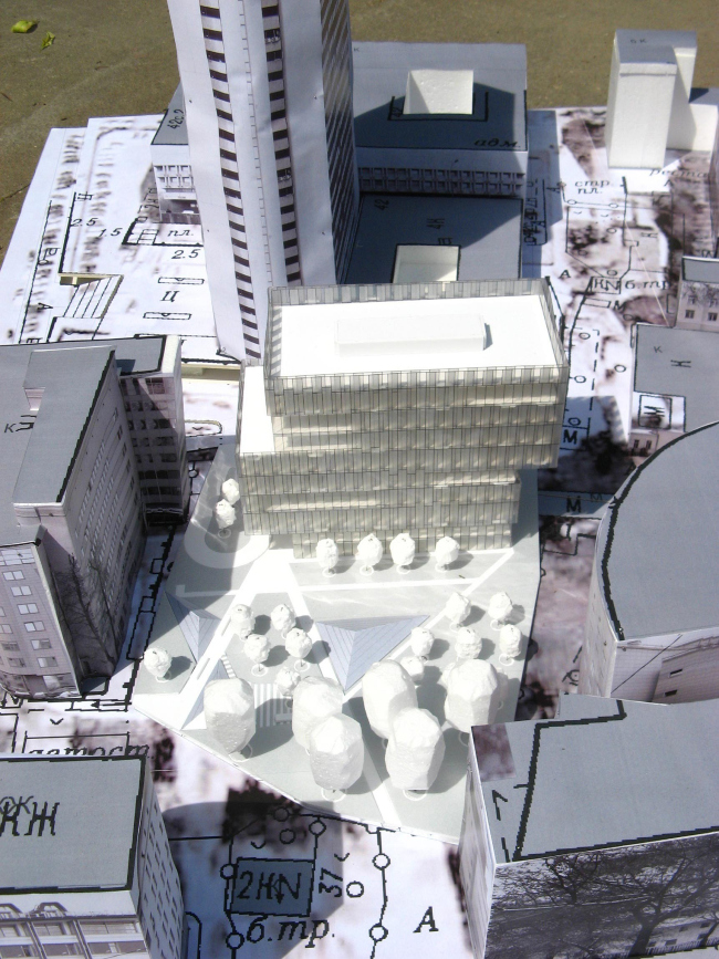 Участок, предназначенный под застройку, расположен в глубине квартала, ограниченного улицами Гиляровского и Щепкина, а также Капельским переулком. Дом номер 37 представляет собой двухэтажный учебный центр – типовой советский проект, не добавляющий облику квартала никакой визуальной яркости. По своему прямому назначению этот объект давно уже не используется и именно поэтому был выставлен на торги и продан под реконструкцию. Окружен он более высокими административными зданиями, одно из которых принадлежит Московскому метрополитену, другое – спецслужбам, а восточная граница участка прилегает к скверу, являющемуся частью природоохранного комплекса столицы. Это соседство во многом и предопределило функциональное назначение нового объекта. Строить жилье в плотном кольце офисных высоток, как минимум, не гуманно по отношению к его будущим обитателям, а вот офисный комплекс сюда напрашивался сам собой. В пользу намерений заказчика сыграла и близость к метро (пять минут неспешным шагом), и вполне сложившаяся деловая репутация всего района между СК «Олимпийский» и проспектом Мира.