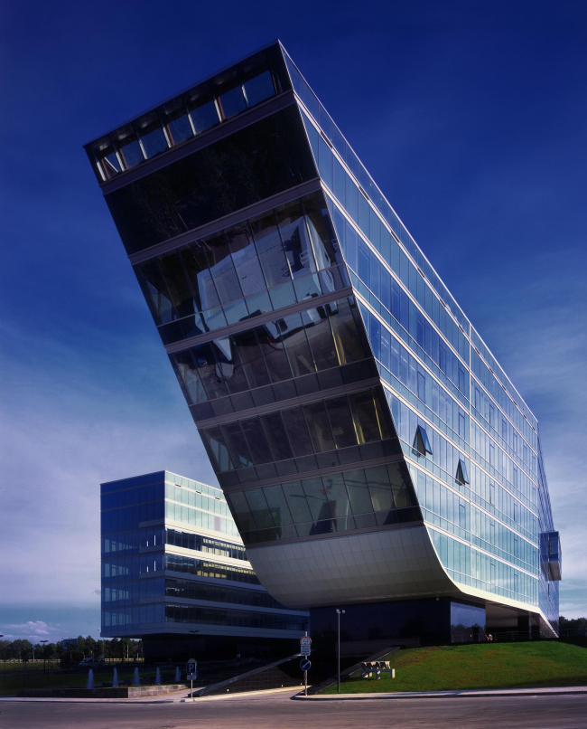 Однако получается так, что дома-скульптуры это хит, но в то же время зданий-логотипов, даже в последние годы, появилось не так уж много. И чаще всего архитекторы, желая включить в свое произведение некий говорящий знак (эмблему какой-нибудь политической партии или логотип компании), идут самым простым путем – зашифровывают графическую информацию в соответствующей формы план. Это снимает противоречие между плоскостной природой графического знака и неизбежной трехмерностью любого здания, заодно рождая компромисс: необходимый знак присутствует, но не очень-то влияет на общий результат. Не секрет ведь, что зашифрованные в плане знаки не особенно читаемы, во всяком случае, их сложно узнать с первого взгляда.