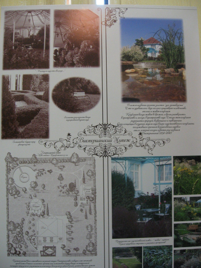 Даже при первом беглом знакомстве с экспозицией бросается в глаза, насколько, по сравнению с предыдущими годами, уменьшилось количество частных объектов. Очевидно, что ландшафтники, как и остальные представители цеха, ощутили на себе все «прелести» экономического кризиса. Заказов стало на порядок меньше, а вот стилистические пристрастия клиентов пока так и не пришли к какому-то единому знаменателю. Как наглядно свидетельствует экспозиция в Доме на Брестской, подавляющее большинство частных садов продолжает проектироваться «в стилях» – тут и античность, и викторианская Англия, и модерн. Духом античности, например, проникнут проект «Нинфейская история»: на приусадебном участке создан настоящий перистиль, внутри которого разбита миниатюрная копия знаменитого сада Нинфа. Поражает воображение и краснодарский жилой комплекс «Королевская площадь», воспроизводящий не что-нибудь, а парижскую площадь Вогезов! Французский регулярный парк служит не только усладой для глаз, но и «прикрытием» подземной 2-хуровневой парковки.