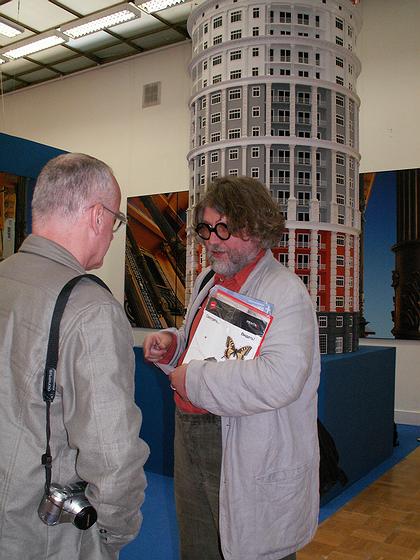 Михаил Белов на фоне макета башни «Британика»