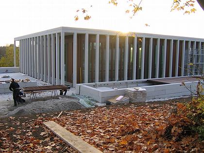 Постройка была возведена рядом с Национальным музеем Шиллера, и в ней в качестве постоянной экспозиции размещены экспонаты этого музея, относящиеся к 20 веку. Здание Чипперфильда напоминает о Парфеноне – или об идее храма-периптера вообще, но архитектор передает этот тип современным формальным языком: окружающие объем здания бетонные опоры гораздо стройнее античных мраморных колонн, и гораздо более геометричны. Стены «целлы» обшиты деревом. Также в постройке использованы различные виды камня. Она выглядит особенно легкой и изящной по сравнению с тяжелым объемом собственно музея Шиллера, построенного в 1903 году в стиле необарокко. Неявное противопоставление внешнего и внутреннего пространства (учитывая открытые и застекленные террасы, выходящие на долину реки Некар), искусственного (приглушенного) и естественного освещения, лаконичного объема постройки и мягкого склона холма, на котором она стоит, является постоянной темой проекта. Следует отметить, что Дэвид Чипперфильд занял лишь четвертое место на архитектурном конкурсе, проводившемся Немецким обществом Шиллера в 2001 году. Тогда не было присуждено ни одного первого места, но ни «Вилфорд Шупп» и «Хайнле, Вишер & партнеры», поделившие вторую премию, ни «Шустер Архитектен», оказавшиеся третьими, не смогли уложиться в предложенный бюджет в 5,7 млн. евро. Кроме того, вариант британского архитектора понравился жюри своей функциональностью, строгой эстетикой и творческим подходом к освещению выставочных пространств. Открытие музея приурочено к двухсотлетию со дня смерти Фридриха Шиллера.Литературный музей современности