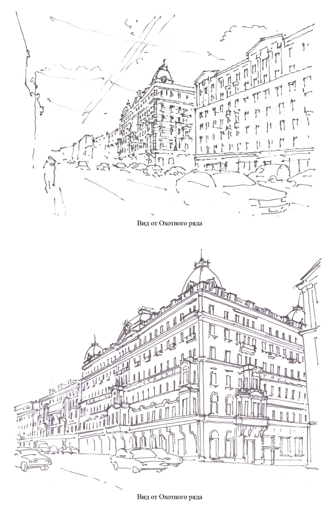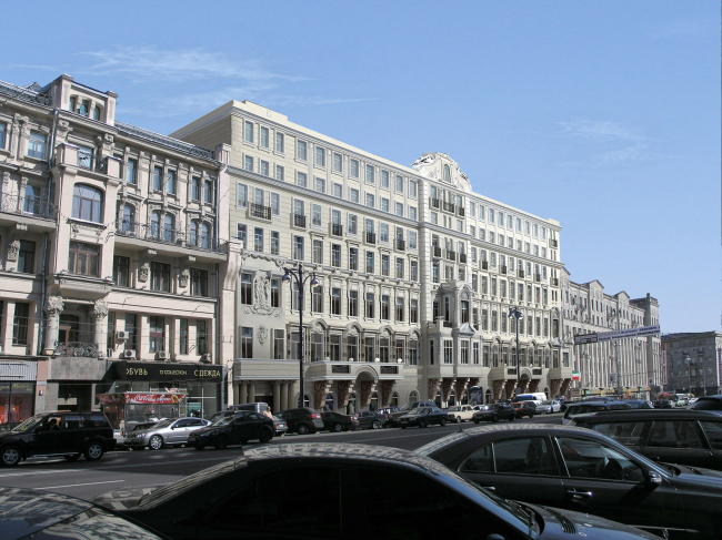 Кстати, именно этими этажами, надстроенными в 1934-м, и было решено пожертвовать в первую очередь, их предполагается разобрать, а на их месте, в тех же высотных габаритах планируется возвести четыре гостиничных этажа, которые помогут разместить в новой гостинице оптимальное количество номеров. В общем, немного конструктивно-планировочной ловкости и никакого мошенничества. Кроме того, как нам рассказал главный архитектор проекта Сергей Павлов, стилистическое решение – пластика и деталировка обоих фасадов (по Тверской улице и Глинищевскому переулку) выполнены на основе сохраняемой и реставрируемой трехэтажной исторической части (проект реставрации выполнен мастерской Л.В.Лазаревой). Проектом, правда, предусмотрены и еще два дополнительных этажа, расположенных с отступом от фасадной линии и скрытых в объеме цилиндрической кровли, очертания которой, как утверждают архитекторы, полностью соответствуют утраченному покрытию здания и оригинальному проекту.