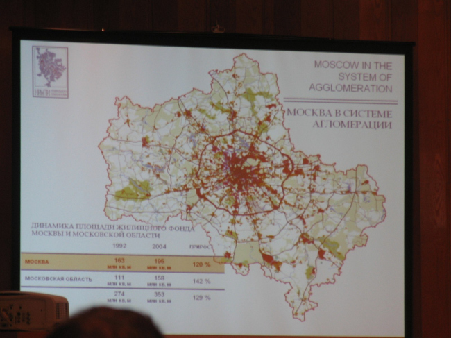Итак, главным поводом для организации семинара стал давно затягивающийся узел столичных проблем: в Москве строительный бум, строят много, но дорого, при этом в год в Москву приезжает по 60 тысяч эмигрантов. Новое строительство вытесняет зеленые зоны на периферии города, и по прогнозам, если сохранится такой же темп строительства, то центр города может дойти до МКАДа, а периферия будет за ним. Предложенное решение – снизить объем строительства и сохранить периферию с ее зелеными зонами. По словам заместителя директора по экономике градостроительства НИиПИ Генплана Москвы В.Я. Беккера, необходимо восстановить активность программы сноса пятиэтажек и освободившуюся территорию 16 000 000 кв. метров застроить новым жильем.