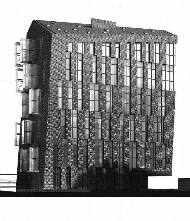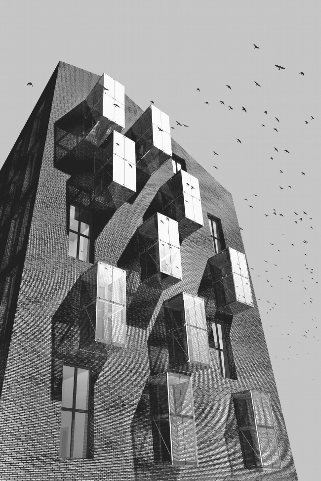 Здесь кроется любопытный поворот сюжета: дома, отдаленно (!) намекая на свое сходство с фабрично-заводским кирпичным стилем прошлого века, стилизуют не столько давешние фабрики, столько нынешние «лофты», за последние десятилетия превратившиеся на западе из дешевого в очень престижное жилье. Получаются псевдо-лофты, снаружи похожие на заводские цеха, но не совсем – используя неожиданную ностальгическую ноту: где вы, очаги пролетарской революции? – архитектор изысканно развивает ее, возвращая нас в сегодняшний день.