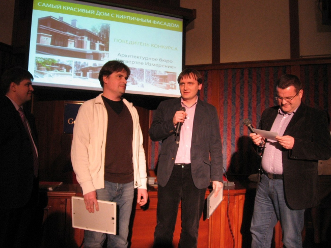 Впрочем, не только это показалось гостям второй церемонии награждения хорошо знакомым. Премия вручалась там же, где и в прошлом году, а вели ее и объявляли результаты те же самые лица. Своего апогея ощущение déjà vu достигло в том момент, когда публике был продемонстрирован проект-победитель. Лидером интернет-голосования стал дом в Барвихе московского архитектурного бюро «Четвертое измерение». Парафраз знаменитого «дома над водопадом» Фрэнка Л. Райта, он оказался чрезвычайно похожим на проект архитектурной мастерской Portner Architects, получившей главный приз конкурса в прошлом году. Как выяснилось чуть позже, даже отделан он был тем же самым материалом (керамическим фасадным кирпичом Terra), что и победитель-2008.