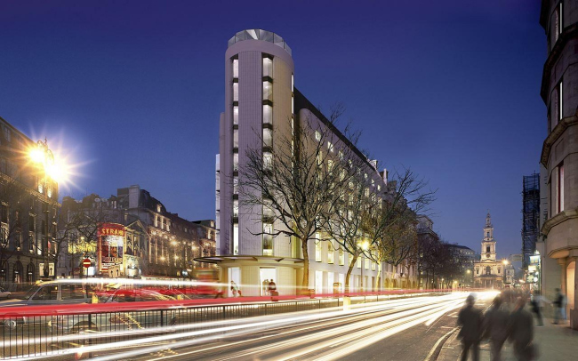 Таким образом, эта фирма не остановилась в своем сотрудничестве с этим знаменитым британским архитектором на мадридском отеле "Пуэрта Америка". Новая постройка появится на одной из центральных лондонских улиц Стрэнде и должна стать как новой архитектурной достопримечательностью, так и одной из лучших гостиниц города. В комплекс войдут рестораны, бары, кафе на крыше с захватывающим видом на Лондон, 170 обычных номеров и 90 апартаментов. Последние будут размещены за историческим фасадом Дома Маркони, входящего в список архитектурных памятников местного значения британской столицы. Номера же будут находиться за новым каменным фасадом. Всего в отеле будет 14 этажей, в центре здания появится 11-этажный атриум, который призван придать единство внутреннему пространству гостиницы.Отель Силкен Олдвик