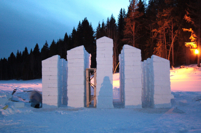 Главной темой строительства «Снежной деревни» стала традиционная русская изба и современная интерпретация этого одного из древнейших национальных архитектурных жанров. Центральной характеристикой избы как жилого сооружения организаторы фестиваля в своем манифесте определили «ее целостность в качестве ансамбля – единство архитектурного объема, декора и интерьера». Ну, а основными строительными материалами стали снег и лед: каждой команде были предоставлены около 6 кубометров прессованного снега, ледяные блоки размером 1х0,5х0,2 метра, а также инструменты, без которых немыслимо создание зимней архитектуры – ручные пилы, ведра и лопаты.