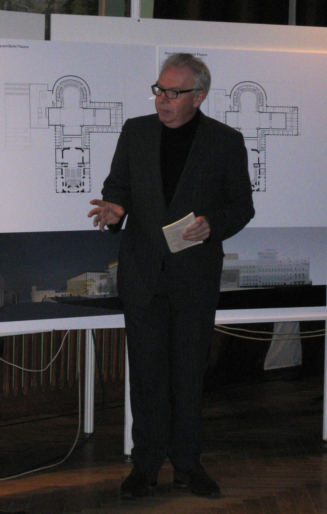 | Только что было объявлено, что в конкурсе на проект реконструкции Пермского театра оперы и балета победил проект Дэвида Чипперфильда.  Дэвид Чипперфильд на презентации своего проекта в ПермиПроект Чипперфильда признан наиболее тактичным по отношению к существующему театральному зданию (памятнику архитектуры) и к городскому окружению, а также – самым экономичным и предсказуемым с точки зрения реализации. Член жюри, глава KCAP Кес Кристианс даже назвал этот проект «шапкой-невидимкой».